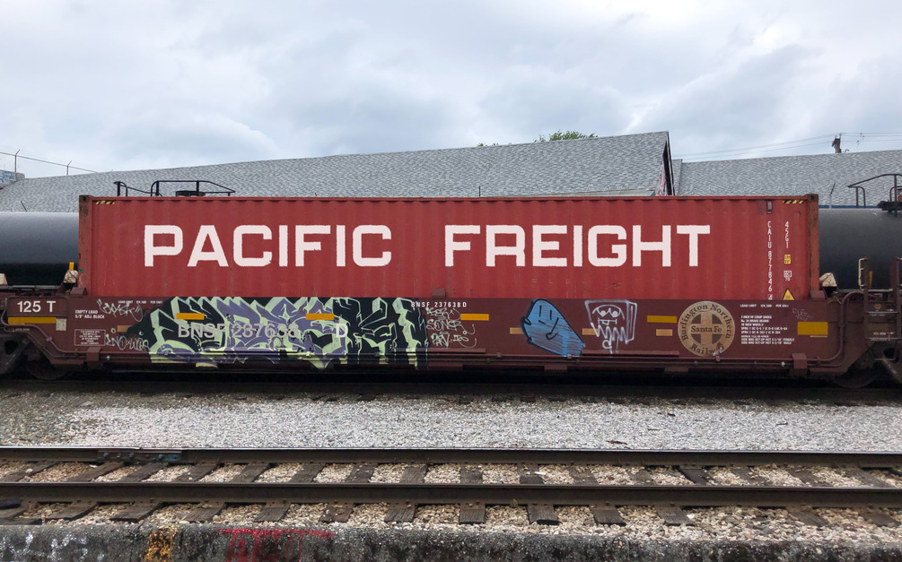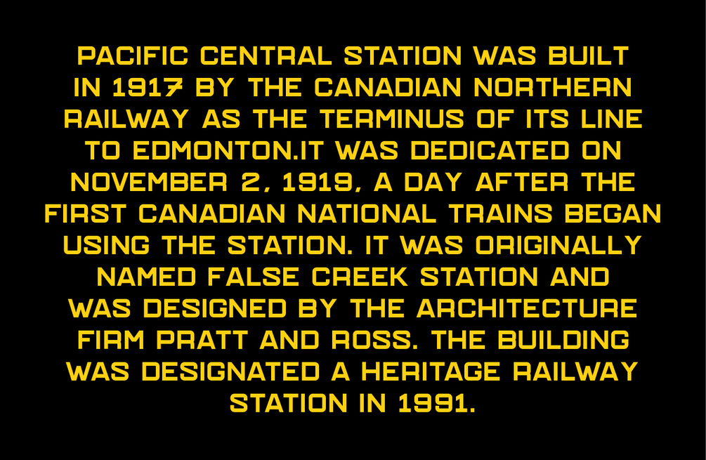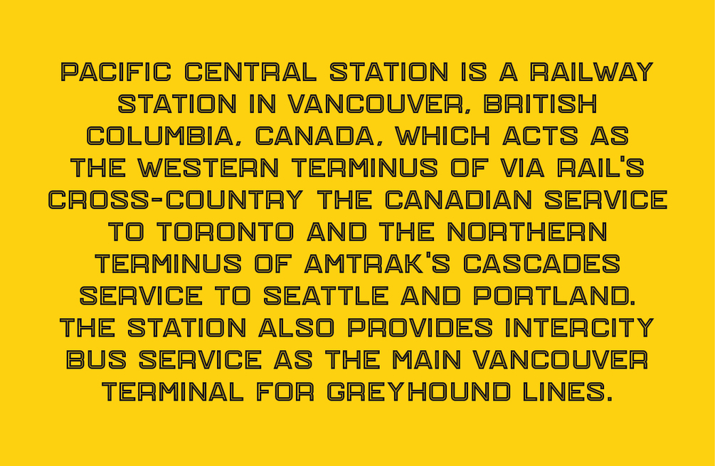 Display typeface based on a 20th century train station signage of Vancouver's Pacific Central.